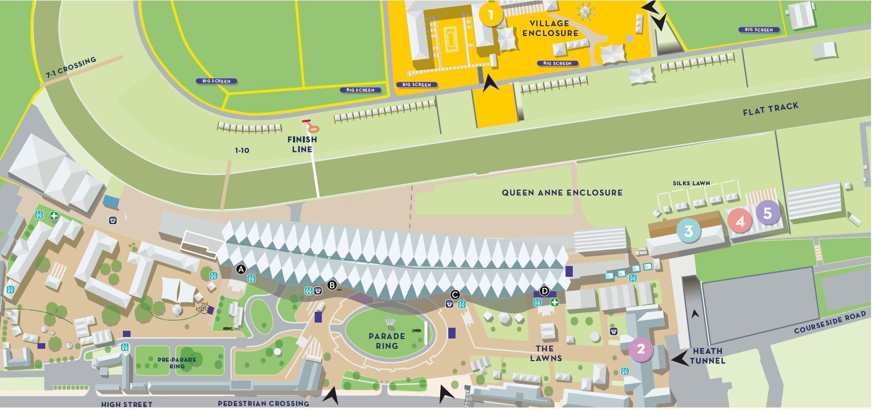 Soak up the sights and sounds of the wider Royal Meeting, with access to the Queen Anne Enclosures facilities. A prime location from which to watch the Royal Procession journey along the straight mile and see all of the racing action.