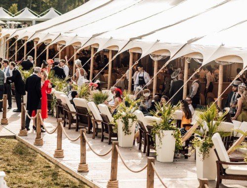 Soak up the sights and sounds of the wider Royal Meeting, with access to the Queen Anne Enclosure facilities as well inside this beautiful bespoke marquee at the east end of the Grandstand with elevated decked terracing overlooking the home straight.